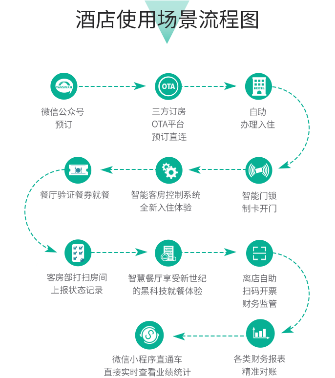 將酒店運營完全接入互聯網,數據可實時查看,手機端、三方訂房平臺、營銷、會員等各項酒店黑科技無死角全打通。